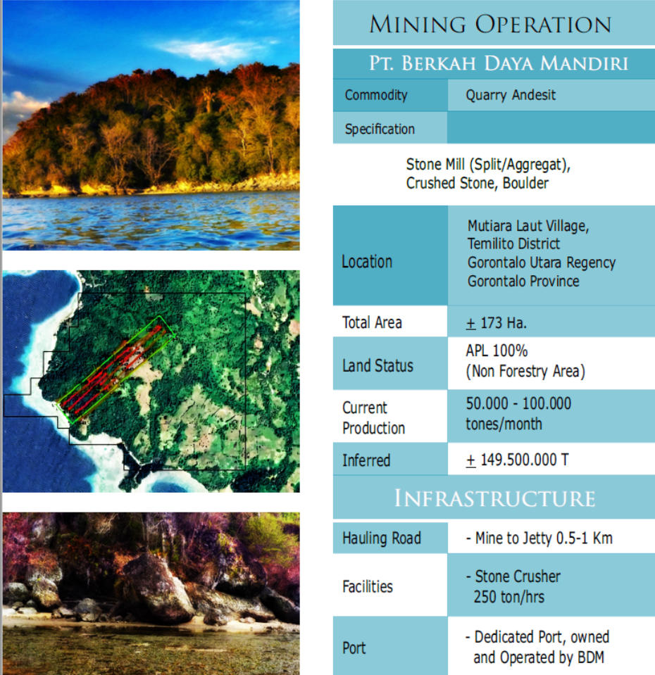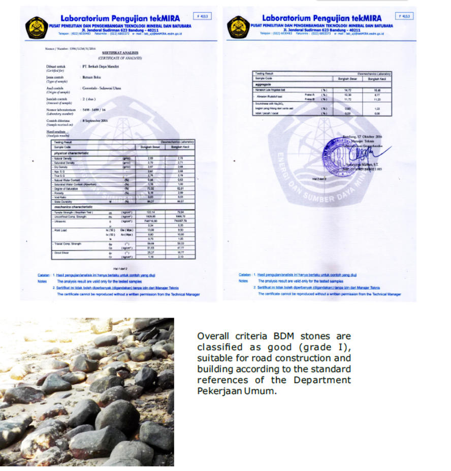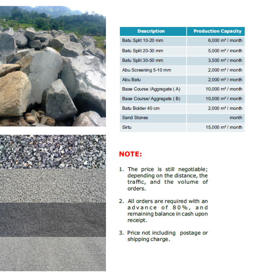 and site rocks with the best quality lab test base on SNI. The initial business activity will be concentrated on